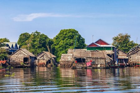 An extraordinary accident of nature occurs once a year on the Tonle Sap river. During the dry season, it drains an inland lake of the same name and flows towards the sea, but for a few short months its flow is reversed. The Mekong, swelled by the melting snows of the Himalaya as well as monsoon rains simply overpowers the Tonle Sap at their confluence in Phnom Penh delivering millions of fish upstream into the lake and the surrounding wetlands. As the lake overflows, rich soils bursting with minerals washed along the Mekong on its journey through China, Burma, Thailand and Laos, are deposited in Cambodian land.
